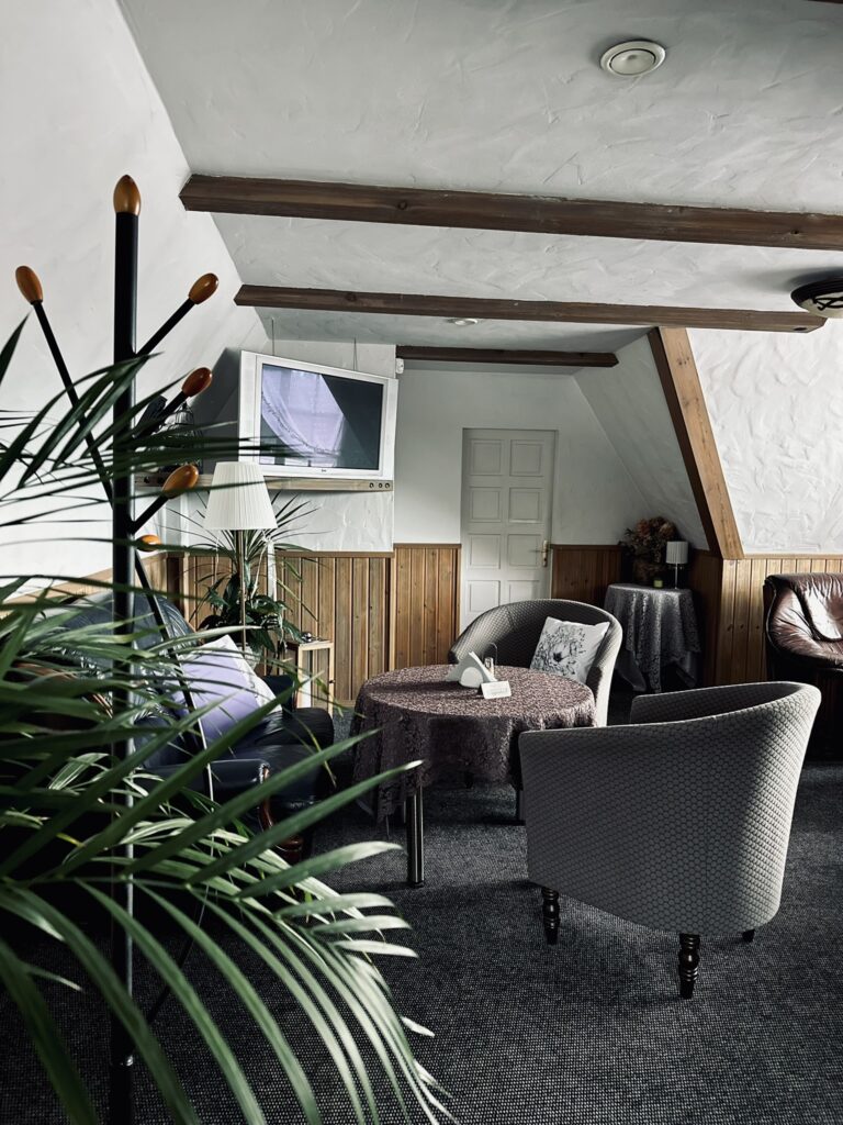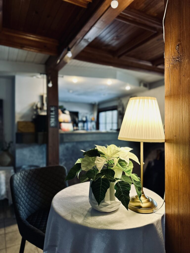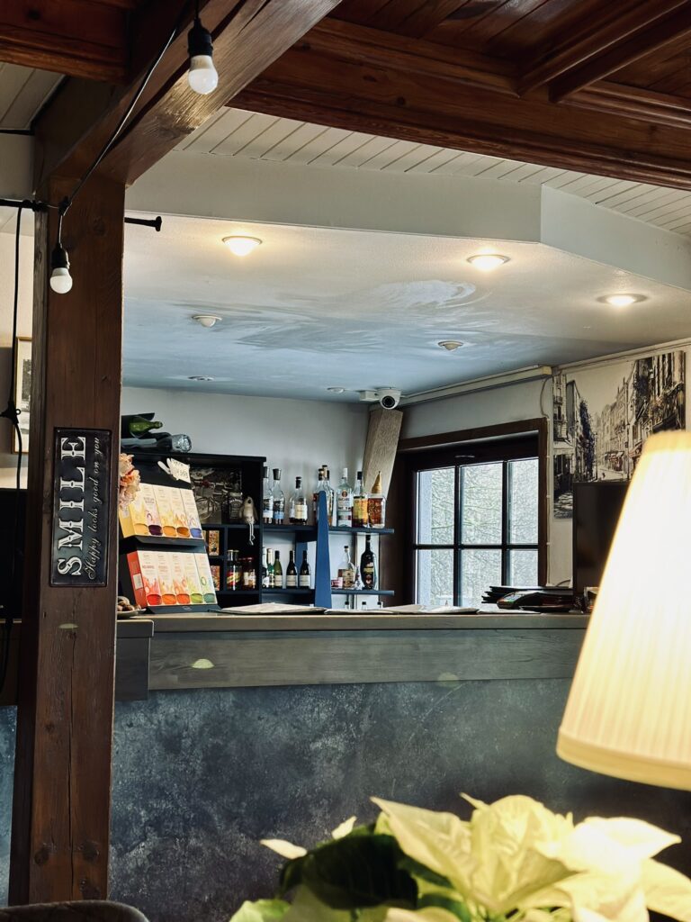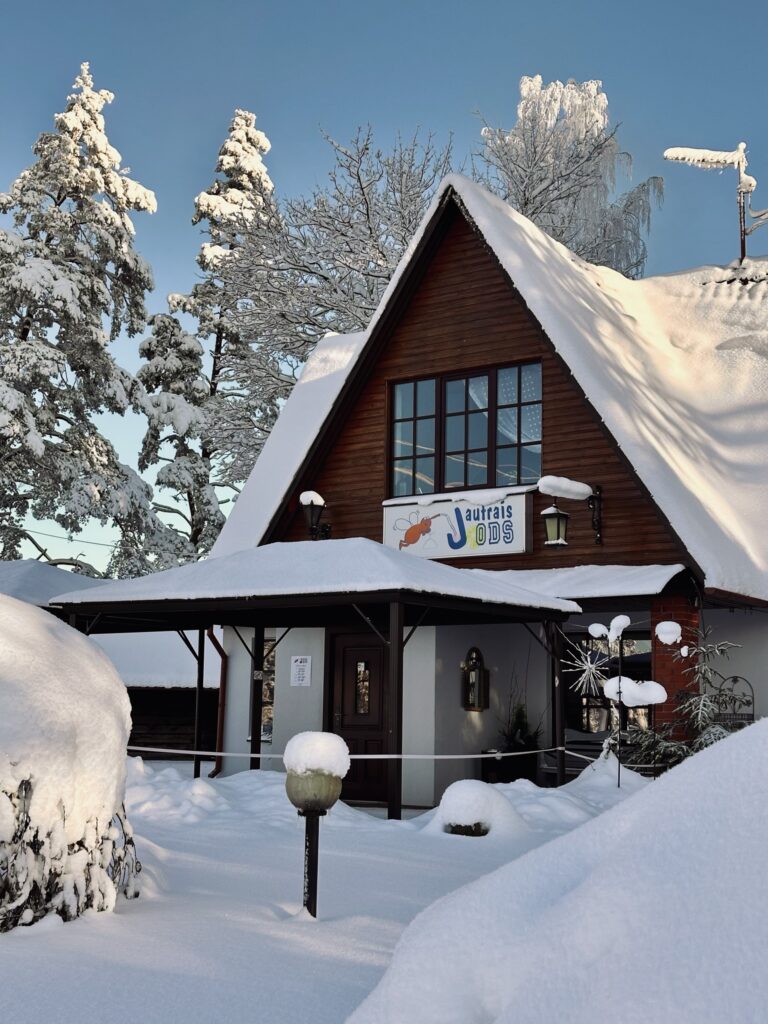 Kafejnīca “Jautrais ods” ir neliela un mājīga vieta, kur piestāt pa ceļam, doties pusdienās vai vakariņās, svinēt svētkus vai atzīmēt kādu svarīgu notikumu. Kafejnīca iekārtota divos stāvos – pirmajā atrodas omulīgi galdiņi pie kamīna, bet otrajā mīkstās mēbeles.