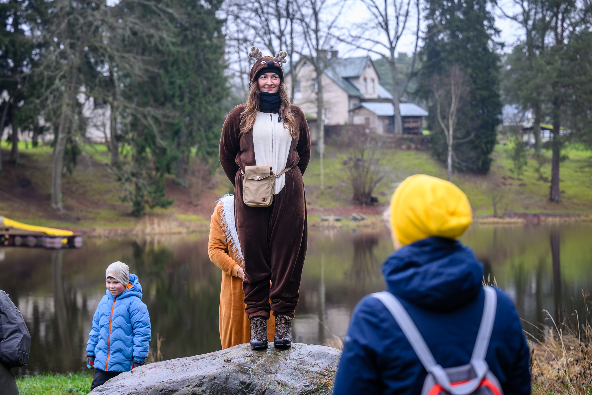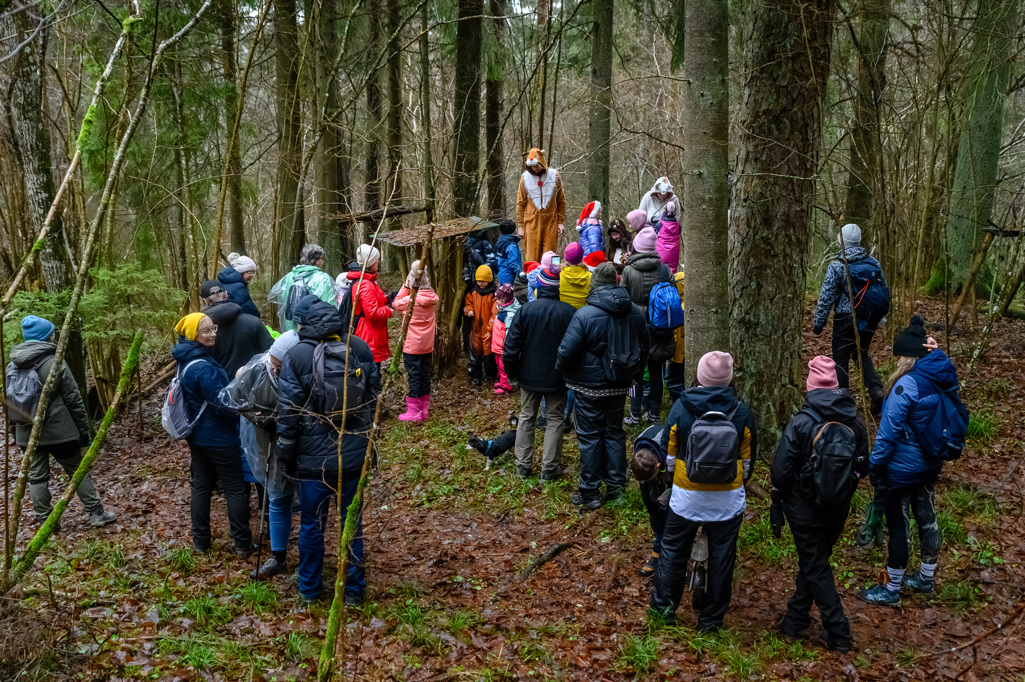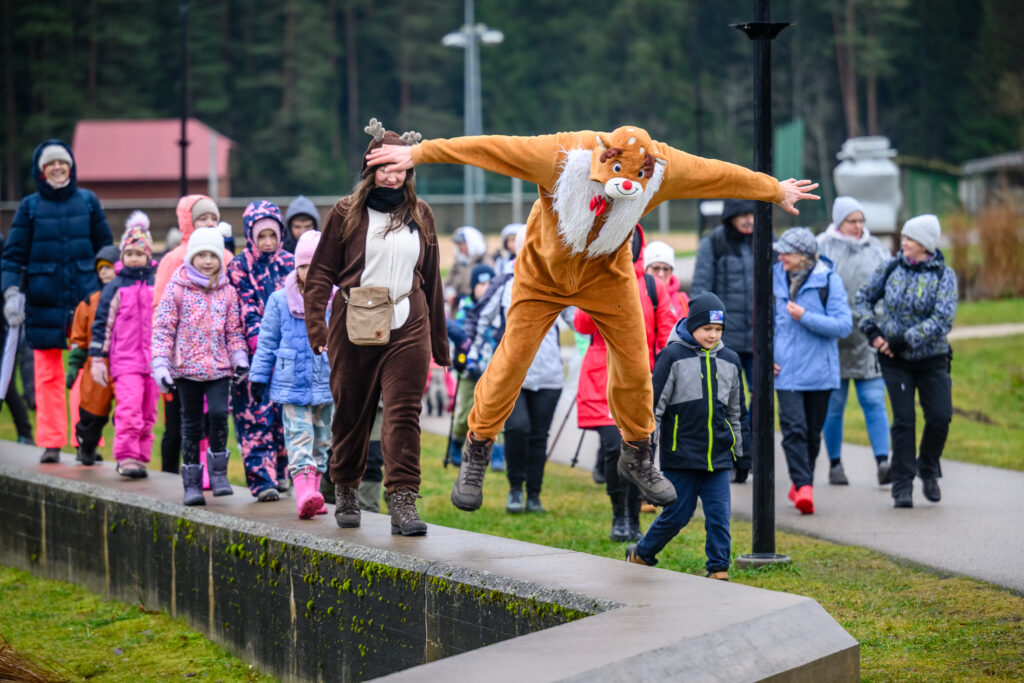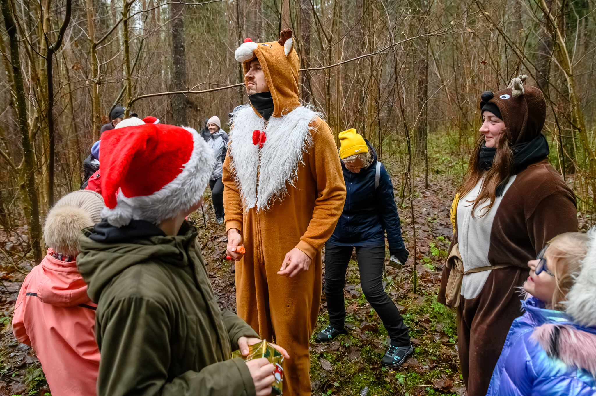 🎄 Dodoties tālāk gar ezera krastu, mazākie dalībnieki palīdzēja salasīt mežā izbirušās dāvanas un atrast to saņēmējus.