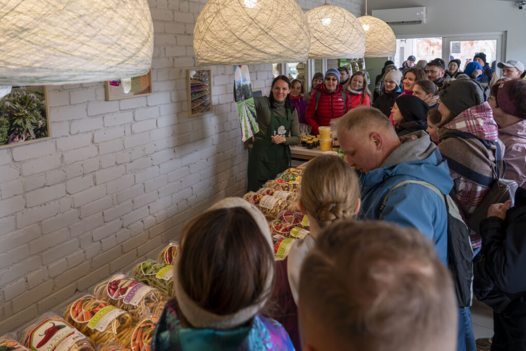 Našķoties un siltas pusdienas baudīt pie sevis aicināja “Leilas gardumi”. Savukārt, lai arī pēc pārgājiena mājās būtu ko gardu pagatavot, dalībnieki tika aicināti iegriezties ģimenes uzņēmumā SIA “Siera ražotne”. Šeit saimniece iepazīstināja ar sava uzņēmuma darbību un produktu tapšanas procesu. Pārgājiena dalībniekiem bija iespēja gan nogaršot, gan iegādāties ražotnes produkciju.