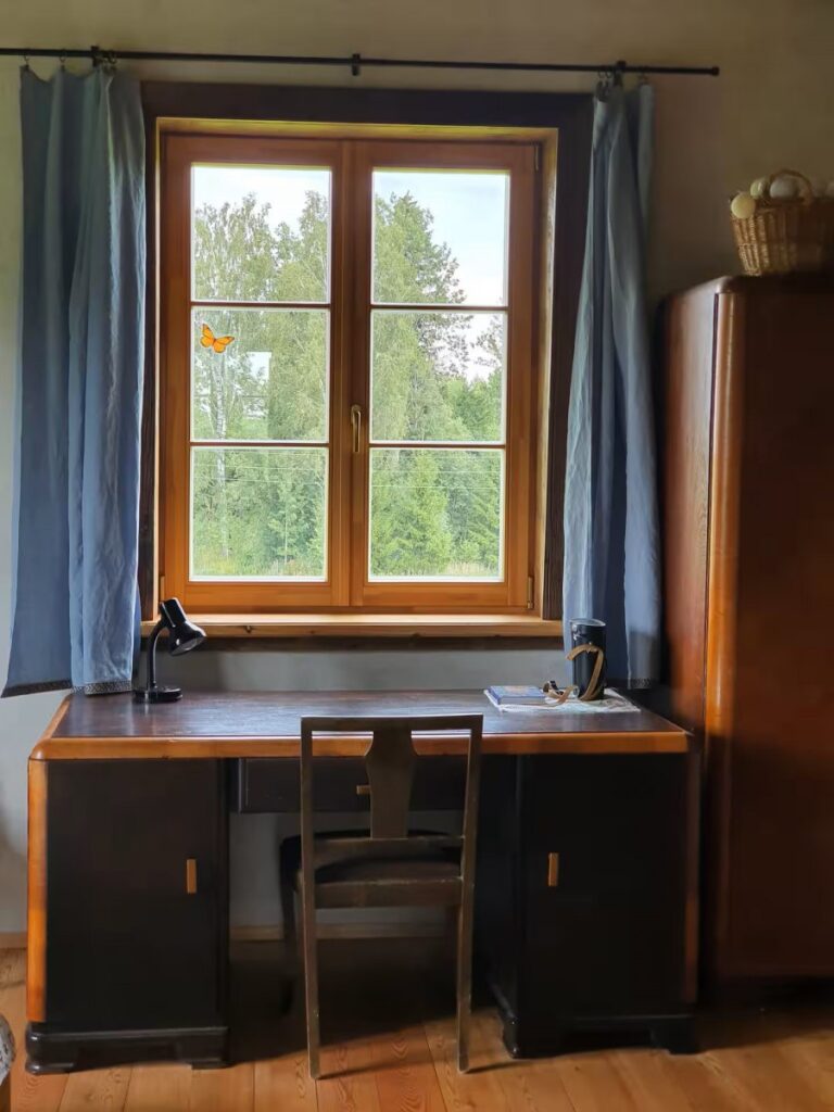 Tā ir īpašnieku ģimenes brīvdienu māja, kurā viesi aicināti baudīt klusumu un lauku dzīves ritmu. Māju ieskauj plašas pļavas, bet tikai 100 metru attālumā atrodas īpašumam piederošs mežs, lieliski piemērots pastaigām dabā. Drustu ciema centrs atrodas pastaigas attālumā un ir ērti sasniedzams kājām. Māja celta 1940. gadā un atjaunota 2020. gadā, saglabājot vienkāršu un autentisku lauku mājas raksturu. Atjaunošanā izmantotas tradicionālas metodes, cik iespējams izvairoties no moderniem materiāliem – saglabāti oriģinālie griesti un citas detaļas, tostarp liela maizes krāsns. Viesiem pieejama visa māja, izņemot bēniņus, kas vēl nav pabeigti un nav paredzēti dzīvošanai. Drustu centrā, aptuveni viena kilometra attālumā, atrodas divi pārtikas veikali, bērnu rotaļu laukums, Krogus ezera publiskā peldvieta un neliels muzejs.