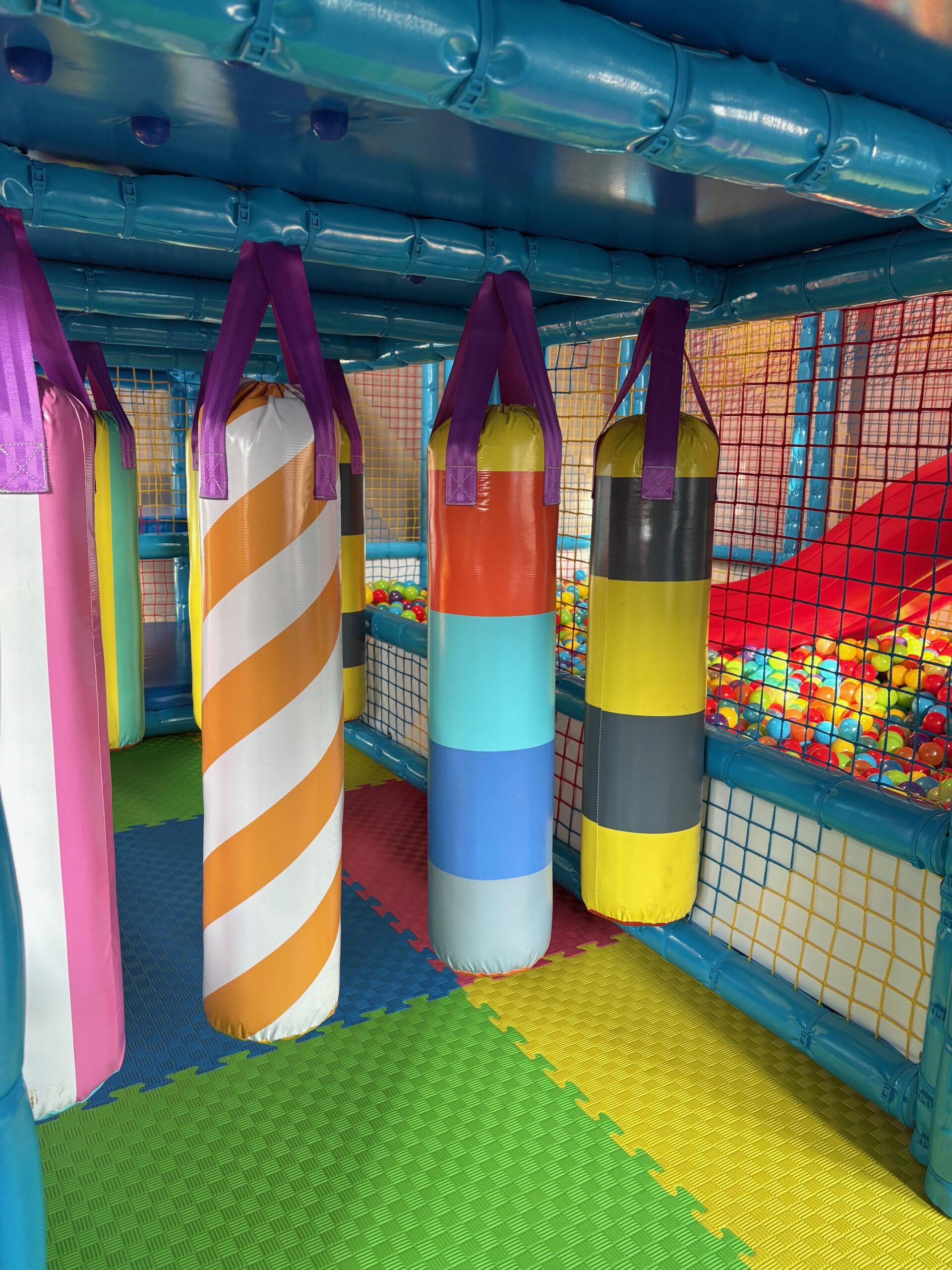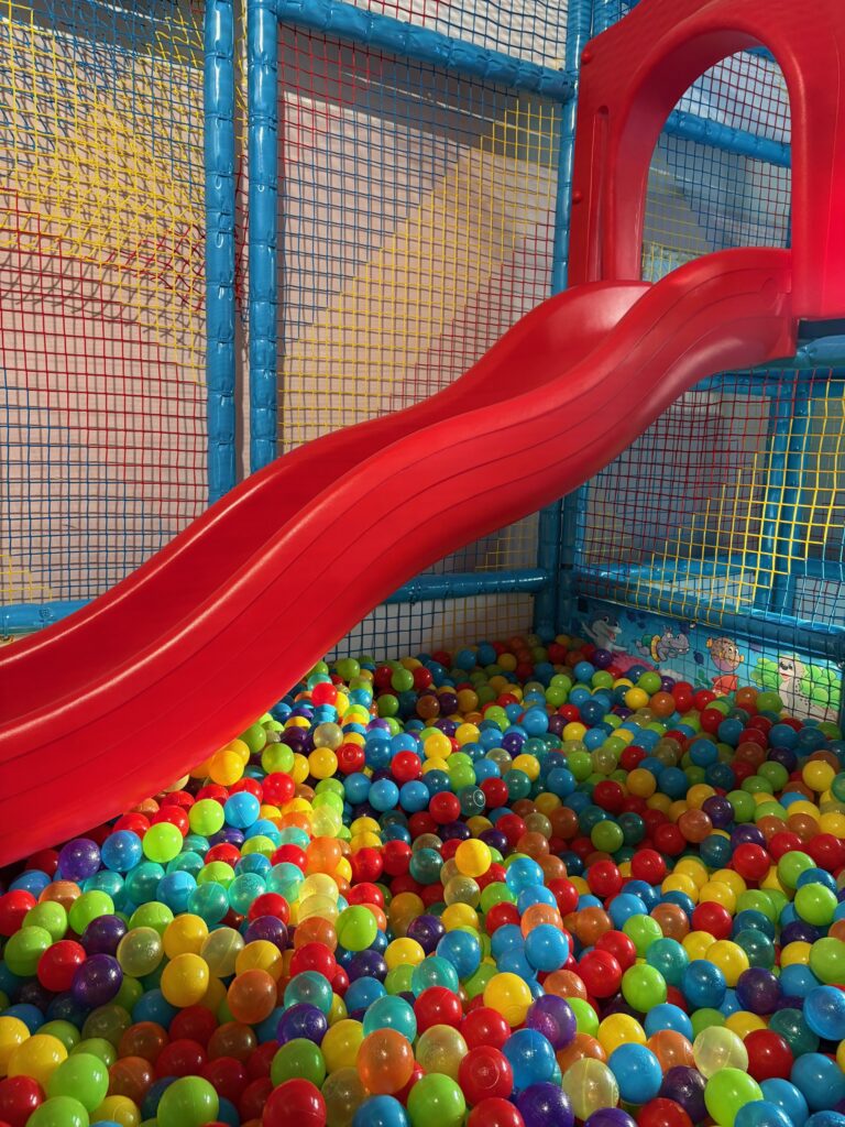 Plaša divstāvu rotaļu konstrukcija ar slidkalniņu un bumbu baseinu