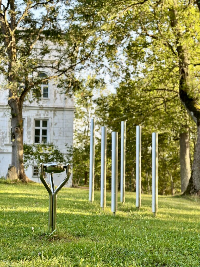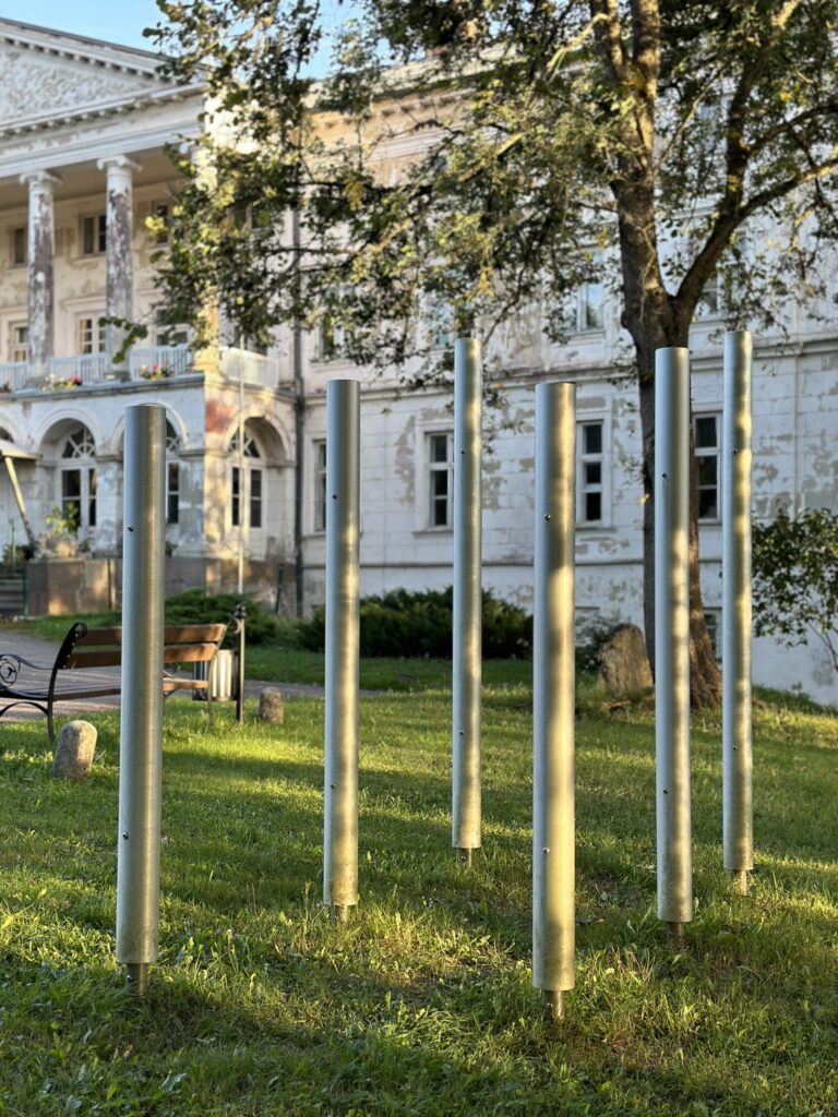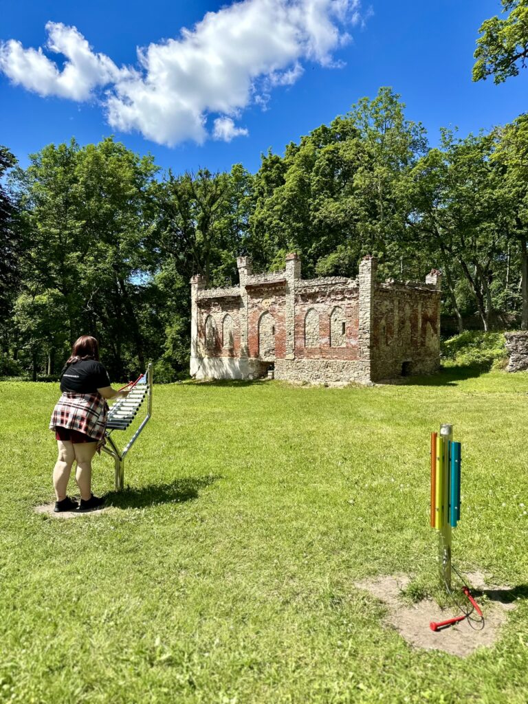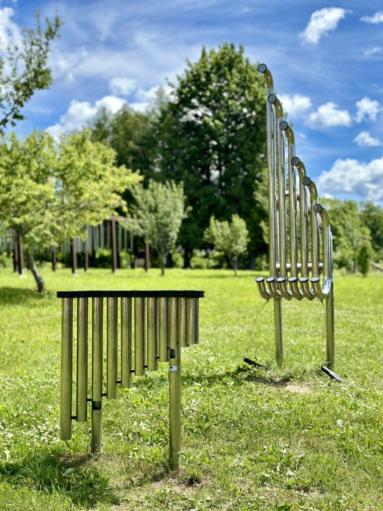Gaujienas muižas parkā ikviens kultūrvēstures un dabas ainavu baudīšanu var papildināt ar skaņu pasauli, spēlējot dažādus brīvdabas mūzikas instrumentus.