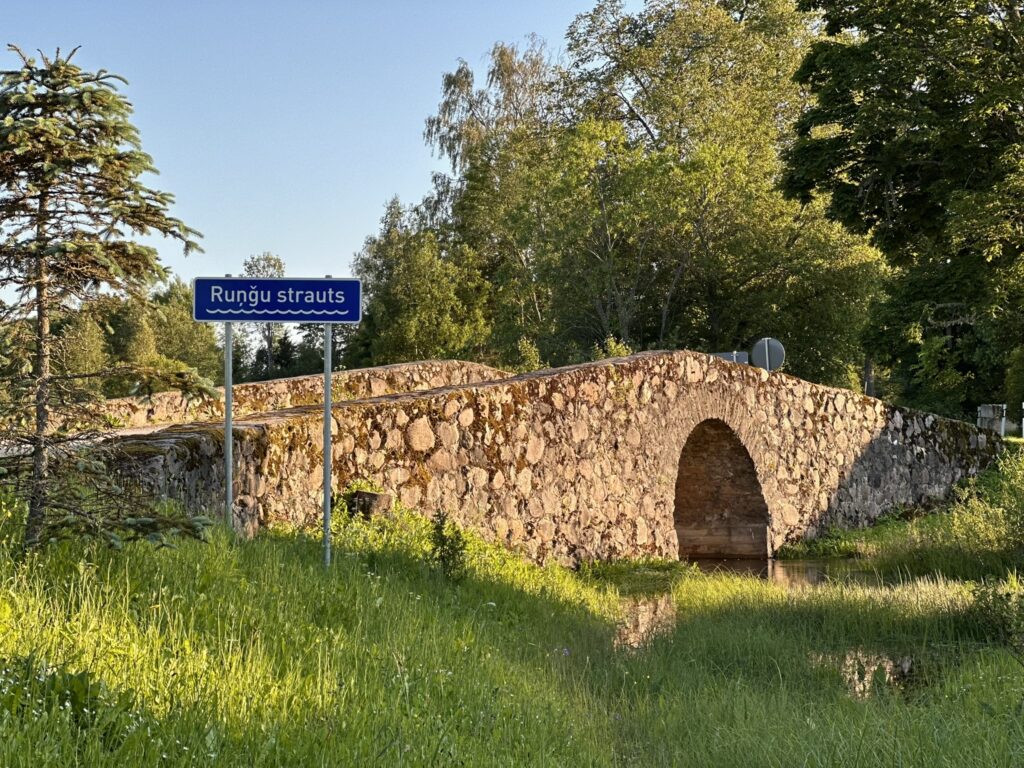 • Otrajā pusē taka ieved Launkalnes apdzīvotajā teritorijā, kurā var vērot Launkalnes ūdenskrātuvi un sakoptās viensētas, vingrot āra trenažieros un pāriet pār Ruņģu strautu pa mūra tiltu.