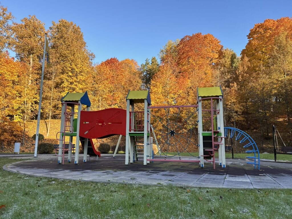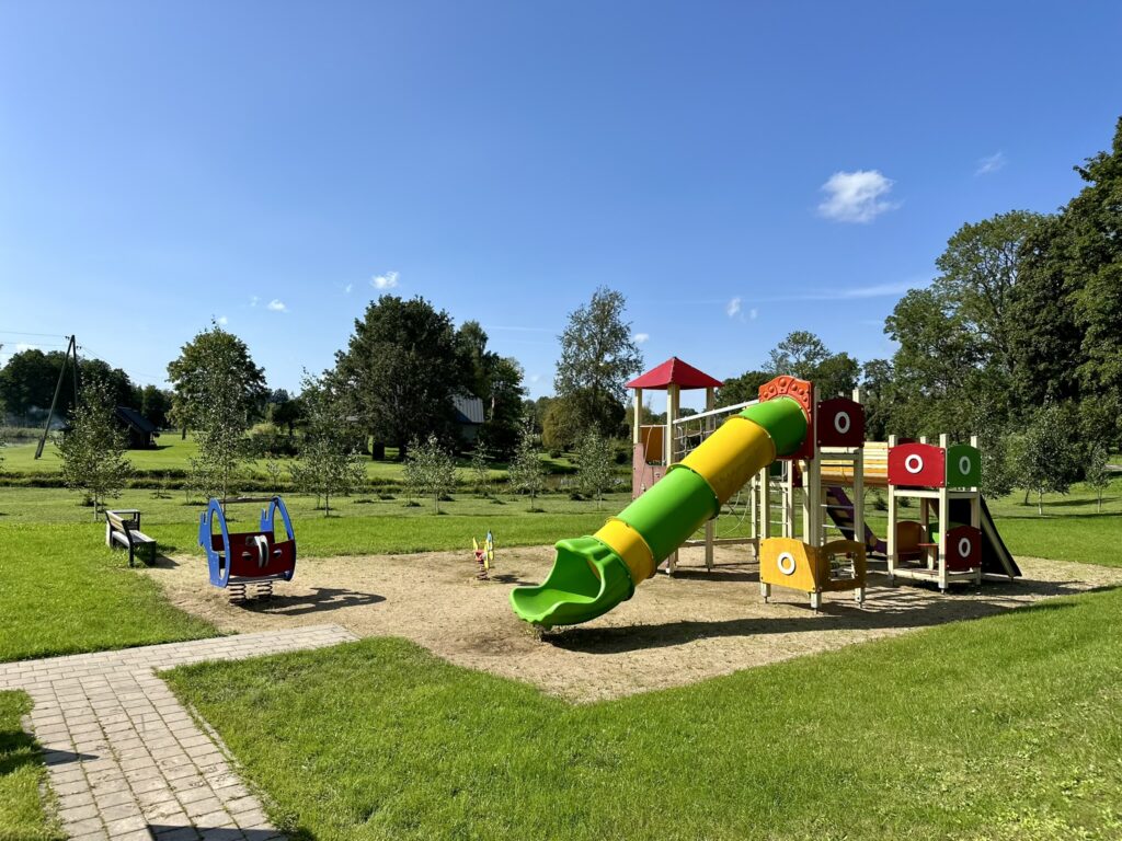 Atrodas Apes centrā, pretī Apes Kultūras centram (Skolas iela 4). Rotaļlaukumā pieejamas šūpoles, slīdkalniņi, rāpšanās siena un dažādi citi fiziskas aktivitātes attīstoši elementi.