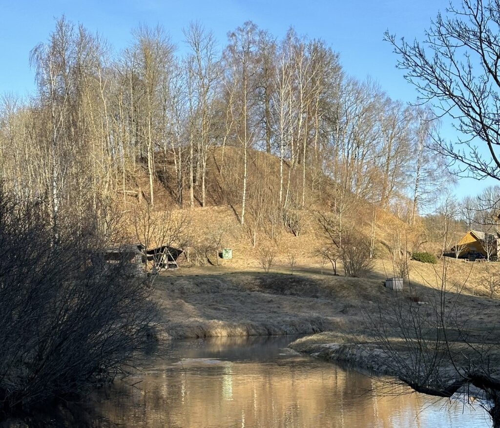 - Pret upi vērstajā nogāzē ir neliela ala.
