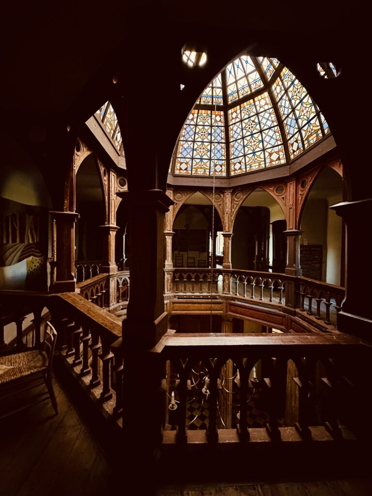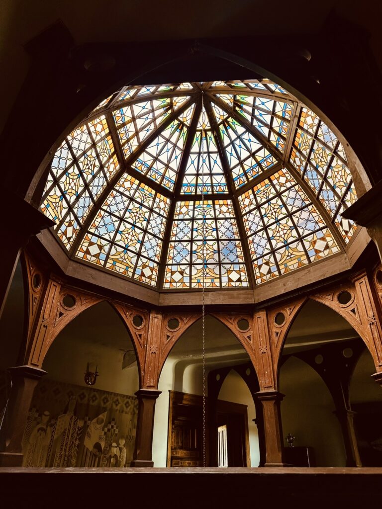 • Otrajā stāvā no koka darināta arkāde balsta muižas pilīs ļoti reti sastopamu konstrukciju – virsgaismas kupolu, kura vitrāžas darinātas 20. gs. 90 gados.