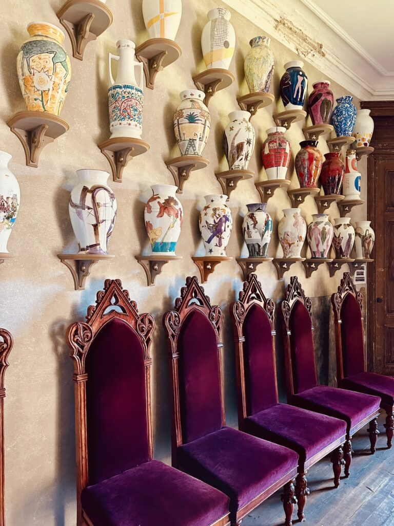 • Pili ieskauj terasēts parks ar skatu uz ezeru.